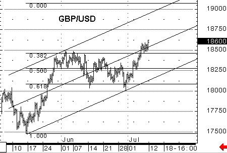 Фунт будет также относительно силен из-за ожидания по ставкам, однако анализ циклов противоречит этому выводу, поскольку указывает на то, что EUR/GBP усилится в течение нескольких недель. Циклы призывают фунт укрепиться во вторник, когда, по нашим расчетам, должен быть сформирован промежуточный пик; при этом возможно тестирование 1.8680, и не исключено даже достижение нашей начальной цели 1.8750. После этого ожидается отступление в течение недели перед возобновлением роста в начале августа. Наша дальнейшая цель - 1.9000. Только закрытие ниже 1.8495 укажет, что фунт станет резко снижаться на следующей неделе и будет падать к 1.8300, но этот сценарий маловероятен.