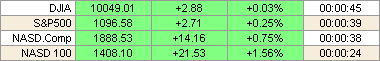 Caterpillar Inc. стал лидером потерь среди компонентов индекса Dow. Стоит отметить, что индекс смог вернуть назад психологическую отметку 10000, ниже которой он опустился впервые с 25 мая. Caterpillar сообщил о доходе во втором квартале до $ 552 миллиона, или $ 1.55 на акцию, против $ 1.15 на акцию в том же квартале год назад. Результат оказался ниже средней оценки аналитиков. Высокие расходы из-за роста цен на используемые материалы негативно сказались на финансовых результатах. Акции компании рухнули после публикации отчета на 8 процентов. К моменту закрытия сессии Caterpillar потерял 4.88%, снизившись до 73.18.Ebay, предоставивший свой отчет сразу после закрытия торгов в среду, также разочаровал инвесторов. Компания предоставила довольно острожный прогноз доходов на летний период, ссылаясь на сезонное падение продаж товаров с вебсайта. Однако к моменту закрытия торгов Акции Ebay оставались в положительной зоне, поднявшись на 0.31% до 76.50.