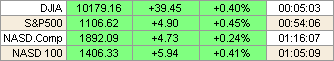 Американские акции смогли вырасти на торгах в понедельник, поскольку опасения возможных террористических атак уступили сильному доходу от Procter & Gamble Co., акции которой оказали значительную поддержку индексу Dow. "Мы открылись понижением, поскольку в голове многих бродили волнения в отношении новых террористических актов. Когда давление продаж было завершено, то рынок начал набирать движущую силу и расти, ведь мы готовы к атакам Аль-Каиды", - высказал свое мнение Стенли Нэби, вице-президент Silvercrest Asset Management Group. Стоит отметить, что потенциальная террористическая угроза в очередной раз взвинтила цены на нефть, которые достигали 43.94 доллара за баррель на NYMEX. Отчет ISM инвесторы также оценили как позитивный фактор. Как говорит Милтон Езрати, старший экономический стратег из Lord Abbett & Co., "данные показали, что федеральное правительство не стоит перед необходимостью резкого увеличения ставок, и этот факт несколько успокоил игроков".