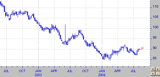 Технические аналитики Lehman Brothers обращают внимание, что индекс доллара на FINEX продолжает флиртовать с краткосрочным простым скользящим средним значением в 89.65 (минимумы четверга на 89.63/ 89.87). " Мы поддерживаем бычье представление по доллару, поскольку недельные графики выдвигают на первый план прорыв вверх индексом доллара США 2-летней линии тренда в конце июля, - отмечают они. - Дальнейшие достижения доллара теперь вероятны в конце этой недели, а начальная техническая цель/сопротивление - максимумы диапазона в 90.30/45". Индекс доллара должен будет очистить область 90.45, чтобы подтвердить силу доллара и обозначить стадию для большего восстановления в середине августа, обращают внимание они. Индекс доллара США держится сейчас на 89.72.