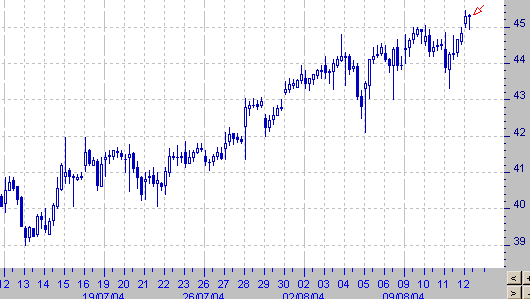 Цены на нефть достигли сегодня нового рекордного максимума. Котировки августовского контракта на Light Sweet поднимались до уровня $ 45.45. Ажиотажному росту цен способствуют многочисленные случаи сбоев в мировом производстве сырья. "Мы получили отложенную реакцию на вчерашние новости, - говорит Карл Ларри из Barclays Capital. - Все нервничают относительно того, что случится в Венесуэле в выходные, и никто не знает, как разрешится ситуация с "ЮКОСом" и приведет ли это к каким-либо потерям в добыче нефти".