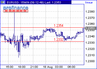 Евро/доллар завершает азиатский сеанс торговли практически без изменений. В начале дня пара консолидировалась у верхней границы диапазона 1.2355. Поглотить офера на 1.2365 не удалось и перед открытием Токио евро/доллар начал нисходящее движение. Биды, установленные на 1.2330, замкнули нижнюю сторону, и евро возобновил плавный рост. Дилеры сообщают, что ближние офера (стоявшие на 1.2365) смещены к 1.2380. Далее офера отмечены на фигуре 1.2400 и выше на 1.2440. Серия стопов расположена на 1.2415/20. Биды установлены на 1.2300 и 1.2270.