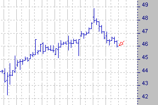 Ниже приведен часовой график на нефть марки Sweet Crude Oil.