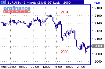 Пара протестировала минимумы торгового дня на 1.2060. Стремительное возвращение в область 1.2080 было вызвано усилением нисходящих движений в кроссах евро/йена и фунт/йена, поскольку трейдеры ускорили выход из своих позиций против японской валюты, открытых под воздействием роста цен на нефть. Дилеры отмечают, что стопы, ранее анонсированные сразу над фигурой 1.2100, были перенесены к 1.2125 в рамках реструктуризации клиентских ожиданий перед публикацией в среду данных по заказам на товары длительного пользования в США.