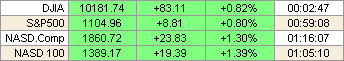 Значительную поддержку роста индекса Dow оказала авиакомпания Boeing после сообщения о том, что Singapore Airlines Ltd. планирует купить у крупнейшего авиастроителя 31 лайнер модели 777-300ER. Стоимость сделки оценивается в 7.35 млрд. долларов. Акции Boeing выросли на 3.12% до 52.50. А вот строительные компании оказывали давление на главные фондовые индексы. Бумаги K.B. Home упали на 0.81% до 68.24. Акции Pulte Homes Inc. потеряли в стоимости 0.94%, снизившись до 59.19.Крупнейший розничный продавец Williams-Sonoma Inc. сообщил об увеличении квартальной прибыли на 55 процента. Акции компании выросли на 9.97% до 34.64. Потери другого розничного продавца, Gap Inc. связаны с тем, что аналитики понизили рейтинг акций компании до уровня "нейтральный" с уровня "покупать". Акции Gap упали на 2.01% до 19.52.