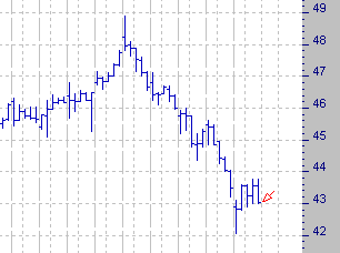 Цены на нефть в пятницу немного подросли после падения в последние дни. Цена октябрьских фьючерсов на нефть WTI в ходе электронных торгов выросла на $0.17 по сравнению с итоговой котировкой четверга и составляет $43.27 за баррель. В четверг цена снизилась на $0.37 - до $43.10 за баррель. Нефть дешевела в связи с приостановкой военных действий в Ираке. Участники рынка надеются, что угроза срыва поставок иракской нефти снизилась. На текущей неделе началась отгрузка сырья через северный нефтепровод и турецкий порт Джейхан на Средиземном море. Большинство экспертов уверены, что нефть продолжит снижение в ближайшие дни, однако пока рано говорить, станет ли эта тенденция долгосрочной.