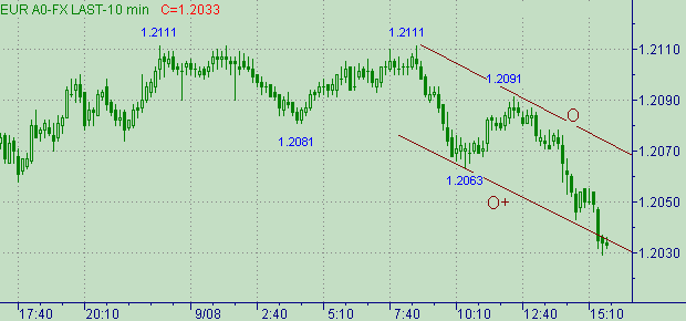 После того как свечи с периодом 15мин. закрылись ниже значения цены 1.2043 важным уровнем для нисходящего локального движения рассматриваем на 1.2043. Другие интересные и технически-отмеченные уровни, которые могут быть ориентиром в случае up-ралли: 1.2100 и 1.2170.