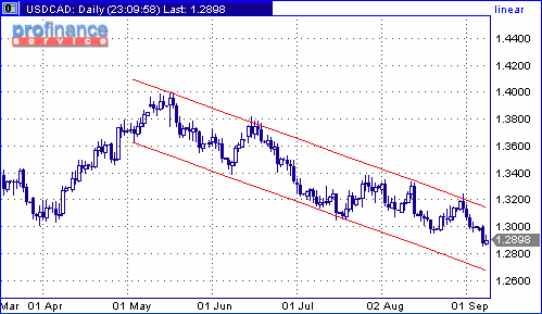 После сегодняшнего повышения ставок Банком Канады на 25 базисных пунктов до 2.25% годовых в совокупности с тем фактом, что рынок с удовольствием продает американские доллары после выступления Алана Гринспена, нисходящее давление в паре USD/CAD сохраняется. Торговля происходит в области 1.2895, после того как "канадец" вырос от максимумов сеанса на 1.2940 до 1.2883. "В течение четырехмесячного нисходящего тренда движущая сила в паре переместила американский доллар в зону перепроданности", - замечают технические аналитики из Merrill Lynch. В связи с этим, оценивая перспективы движения в четвертом квартале, можно утверждать, что минимумы января на 1.2682 очень сильно защищены, добавляют они. Однако верхнюю линию тренда, значение которой сейчас приходится на 1.3125 пара также не способна пробить, так что пока убывающее давление будет сохраняться