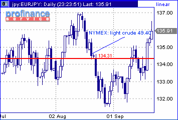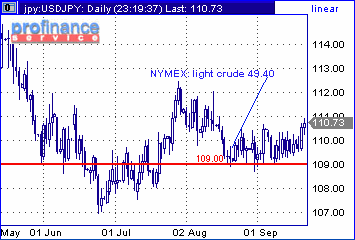 Рост цен на нефть, несомненно, оказывает давление на йену, однако не стоит забывать, что эта корреляция не постоянна. Фьючерсы на NYMEX 16 сентября протестировали минимумы в области 42.75. С тех пор нефть возобновила рост, и этот факт совпал со слабостью йены. Кросс евро/йена, один из классических способов хеджирования рисков в таких случаях, вырос от 133.01 (16 сентября) до 136.50. Тот же самый период времени ознаменован падением йены против доллара от 109.35 (17 сентября) почти до уровня 111.00. Модельные счета все это время были активными продавцами йены, потому как они ожидают рост цен на нефть до уровня 55 долларов за баррель. Однако трейдеры напоминают, что когда 20 августа нефть протестировала свои рекордные максимумы на 49.40, то пара доллар/йена торговалась около 109.00 а евро/йена на уровне 134.30, тем самым, давая понять, что корреляция между "черным золотом" и японской валютой имеет предел, который и опровергает предположение - новый максимум нефти означает новый максимум йены против доллара.