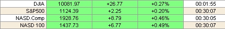 Американские акции незначительно выросли на прошедших в понедельник торгах. Основной позитив для инвесторов был представлен ожиданиями сильных квартальных доходов, а вот ключевое давление на рынок по-прежнему оказывает рост нефтяных котировок, неумолимо приближающихся к отметке 54 доллара за баррель. Стоит отметить, что поскольку торговля казначейскими ценными бумагами была закрыта по причине празднования дня Колумба и важных экономических новостей в понедельник не наблюдалось, то объемы на фондовом рынке были весьма незначительны. Однако продолжение текущей недели представляется довольно "жарким", поскольку ряд ключевых компаний публикует свои квартальные отчеты: Intel Corp. и Yahoo Inc. во вторник, Bank of America Corp. и Citigroup Inc. в четверг. "Люди ждут отчеты по доходам компаний и эти ожидания вселяют в них оптимизм, перекрывающий приходящий с нефтяного рынка негатив. В преддверии сезона отчетов многие компании пересматривали свои прогнозы в сторону уменьшения, однако я думаю фактические результаты окажутся весьма достойными и будут сигнализировать о полноценном росте", - говорит Оуен Фицпатрик, глава торговли американскими акциями из Deutsche Bank Private Wealth Management. Торги на NYMEX завершились ростом котировок фьючерсных контрактов на Light Sweet с поставкой в ноябре на 31 цент до 53.62 доллара за баррель. Внутри торгов был достигнут очередной максимум на 53.80 - самая высокая с момента начала нефтных торгов на NYMEX.