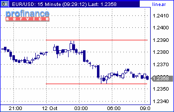 Период непродолжительной консолидации в паре был завершен сразу с открытием Токио, поскольку американские инвестиционные банки, а также несколько континентальных имен активировали продажи в кроссе евро/йена, что и оказало давление на курс единой валюты против доллара. Нисходящее движение в паре позволило протестировать минимумы сеанса на 1.2355, однако биды на 1.2350 остались не поглощены и остановили ослабление евро. После того, незначительной коррекции к 1.2365/70 дилеры отметили упрочнение серии бидов на 1.2350 установленным дополнительным спросом. Офера стоят на 1.2390 и 1.2420. Стопы отмечены на 1.2435.