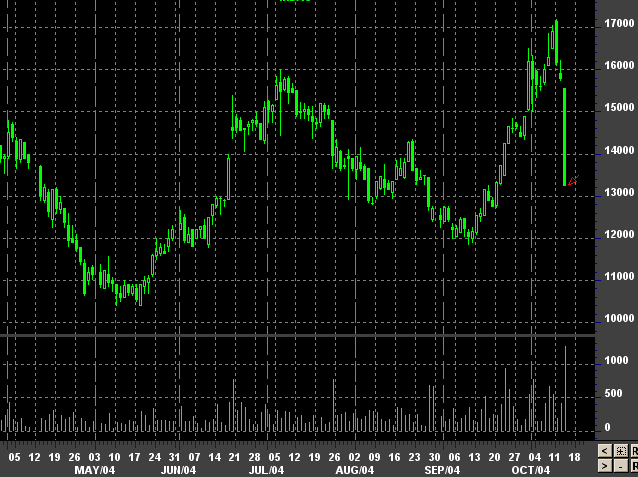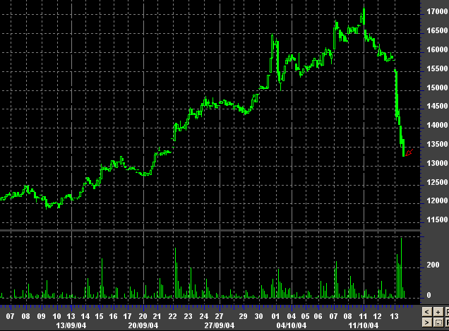 Банки видят продажу фондами, которые используют компьютерные модели в своей торговле, сказал Рассел Ньютон, директор хджфонда Global Advisors LP в Лондоне. 14-дневный индекс относительный силы цены меди, рассчитанный путем усреднения максимумов и минимумов за последние 80 недель, находится выше отметки 70%, что многие игроки рассматривают как сигнал для продажи. "Большая часть падения вызвана ликвидацией позиций фондами", - говорит Джон Кемп, экономист в Sempra Metals в Лондоне "Объем торгов был очень высоким", - добавил он. Запасы меди увеличились на 29 процентов на этой неделе до 28,705 тонн, максимума шести недель. "Покупатели не желают входить в рынок теперь, после того, как убедились, что проблемы с поставками металла несколько разрешены", - сказала Пен Хайшенг, аналитик металлов в China Aviation Futures Co