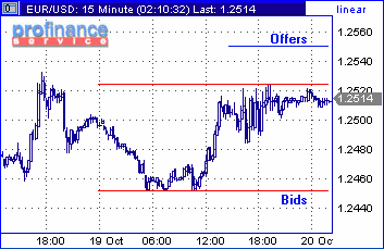 Евро, ровно, как и другие конкуренты доллара, стабилизировали свой рост против американской валюты. Дилеры отмечают крупные предложения в паре евро/доллар на 1.2550. Спрос расположен на уровне 1.2450/40. В данный момент игроки предпочитают повременить с активными торговыми решениями, считая целесообразным дождаться пробития верхней или нижней линии этого коридора. Ослабление на рынке нефти должно спровоцировать некоторое выравнивание длинных позиций в йене, как против доллара, так и против единой валюты. Это единственный движущий фактор на рынке в краткосрочной перспективе. Так как среда не несет в себе ключевых экономических данных и выступлений высокопоставленных лиц, то ожидается, что сегодняшний день не сможет принести вдохновение для вскрытия той или иной указанной границы в паре.