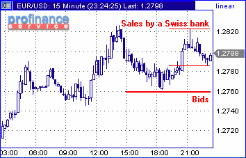 Евро/доллар. Swiss banks активируют продажи от 1.2820.