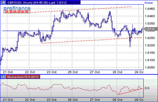 Фунт/доллар. Так же как и в остальных валютных парах вчерашнее волатильное движение британского фунта нельзя соотносить фундаментальными настроениями, поскольку это всего лишь реакция на неожиданное повышение ставки в Китае. Однако технически, стерлинг выглядит способным для возобновления роста. 10-часовой моментум направлен верх, при этом курс пары вновь оказался выше психологического уровня 1.8300. Не стоит рассчитывать на значительный рост. Скорее, вероятна консолидация, но тестирование вчерашних максимумов области 1.8350 весьма вероятно.
