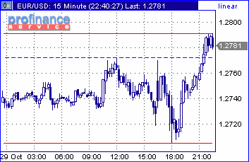 "Кажется, уже вошло в привычку продавать доллары по пятницам", - иронизируют дилеры. В завершении торгового дня пара евро/доллар сформировала новые максимумы на 1.2792. Активные покупки евро перед уикендом отражают волнения участников рынка в отношении потенциальной террористической активности, поскольку это последние выходные перед президентскими выборами в США 2 ноября. Офера на 1.2800, возможно, остановят укрепление единой валюты, однако на уровне 1.2810, согласно сообщениям дилеров, расположены стопы. Если они окажутся поглощены, то завершение сессии выше 1.2800 будет не удивительно. После вчерашнего резкого укрепления доллара многие уже открыли длинные позиции на минимумах в области 1.2650 и о фиксации прибыли пока речи не идет.