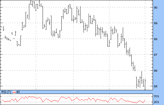 Теперь рассмотрим технический фактор. На графике индекса доллара дневной RSI сформировал бычью дивергенцию, что в краткосрочной перспективе сигнализирует о риске роста индекса и закрытия коротких позиций. Однако стоит обратить внимание на то, что в долгосрочной перспективе медвежий тренд остается в силе. Но данный момент значение RSI на дневных графиках показывает однозначный сигнал - доллар перепродан. В понедельник индекс доллара достиг суточного дна на 84.68. А значение осциллятора RSI составило 27.46 (уровень перепроданности 30). Подобная ситуация возникала и 26 октября. Когда индекс доллара равнялся 84.73, а значение RSI составляло 23.14. Это дает основу для закрытия коротких позиций по доллару. Но! Пока существует предвыборная неопределенность, игроки вряд ли решаться торопить события. Однако, как уже упоминалось выше, в случае появления сигналов о том, что выборы будут "быстрыми", закрытию шортов по доллару будет дан "зеленый свет".