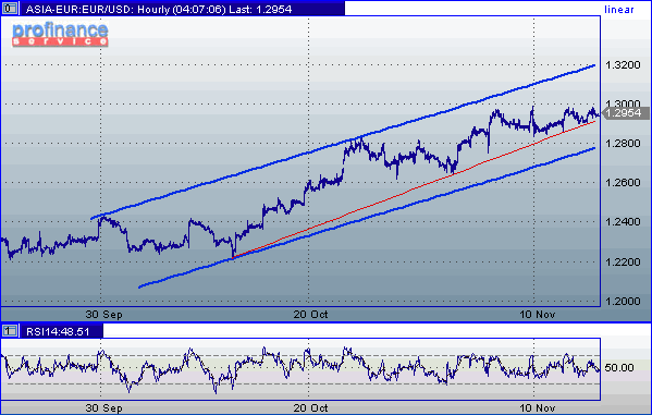 Евро/доллар. Курс пары остается в середине установленного восходящего канала, при этом находит поддержку от линии тренда, построенной с 13 октября. Среднесрочная перспектива говорит о достижение в течение месяца отметки 1.3200, однако более интересен ответ на другой вопрос: будет ли пробит уровень 1.30 именно сегодня? Единая валюта будет испытывать определенное давление и ключевым уровнем в ответе на поставленный вопрос будет 1.2930. Если он сможет устоять под натиском продавцов, то велики шансы формирования восходящего движения, которое окажется способным продавить ключевое психологическое сопротивление.