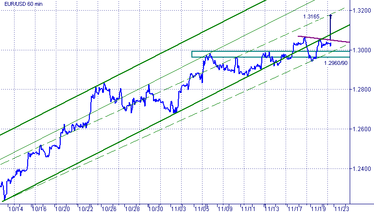 Как минимум, четыре разворотных вершины и один разворотный минимум образовали сильную зону поддержки по евро/доллар в районе 1.2960/90 (по грубой оценке). Перевернутая голова и плечи выполняет редкую для себя функцию модели продолжения. Отмеренный ход составляет порядка $ 1.3165. Там же проходит одна из верхних границ скорректированного восходящего канала. Это первая ближайшая цель для быков. В силу правила, что старый тренд скорее продолжится, чем изменится, в текущей ситуации мы отдаем предпочтение длинной позиции. Мы не видим большой угрозы для быков в том, что пятничная дневная свеча не смогла перекрыть медвежье поглощение, образовавшееся в четверг. Сопротивление будет оказано в районе линии шеи, абсолютного максимума и нижней границы пробитого апканала.