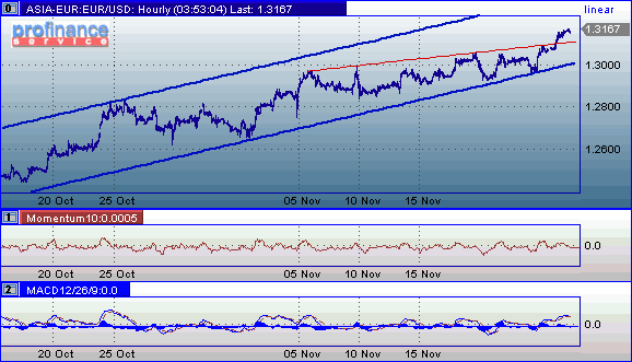 Евро/доллар. Цель на 1.3230 по-прежнему актуальна, хотя опционный барьер на 1.3200 оказывает существенное сопротивление для роста евро. MACD вернулся в положительную зону, что с технической стороны подкрепляет нашу уверенность в продолжении восходящего движения. Открытые длинные позиции стоит сохранить и провести их частичное сокращение лишь в случае пробития указанной на графике красной линии. Однако если цены от нее оттолкнутся, и линия окажется не преодолена, то это можно использовать в качестве добавления к лонгам. Покупать единую валюту на текущих уровнях не целесообразно.
