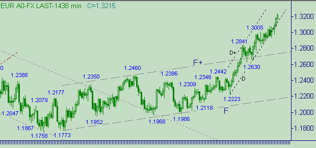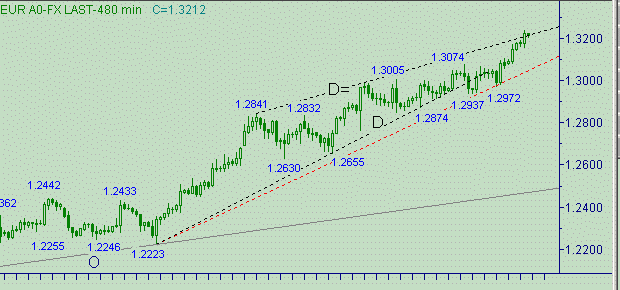 А вот с критериями окончания восходящего движения с началом 1.2972(23/11/04) имеем проблемы. Важные уровни поддержки: 1.3100 и 1.3155. Но не более того. Выделить уровень при прохождении которого "up" переходит в "down" мы не можем.
