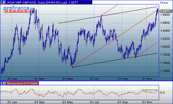 Фунт/доллар. Как мы видим фунт растратил свою движущую силу и без дополнительных драйверов оказался не способен на пробитие важных технических уровней. Ипотечные данные не оставляют надежды на повышение ставки, так что для пробития психологической отметки 1.9000 британской валюте нужно в качестве союзников найти довольно большое количество позитивных факторов. Моментум направлен вниз и реализовал медвежью дивергенцию, так что техническая картина поддерживает дальнейшее развитие коррекции, которая сегодня может позволить доллару восстановиться до 1.8820.
