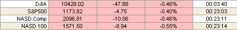 При этом активную поддержку индексу Dow оказывали только фармацевтические компании. Так акции Pfizer Inc. поднялись на 1.79% до 27.82. Акции Merck & Co. выросли на 1.09% до 27.97.