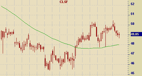 Январские фьючерсные контракты на NYMEX, торгуемые на light sweet, упали в стоимости на 71 цент до 49.05 долларов за баррель, так и не сумев закрепиться выше отметки 50.00, которая была тестирована при открытии торгов.