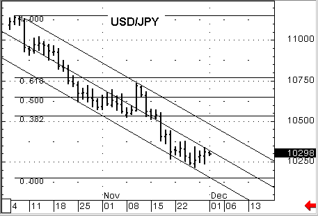 Пара закрылась повышением котировок во вторник и продолжает показывать формирование среднесрочного минимума, поэтому мы не будем удивлены, если в течение следующей недели будем наблюдать торговлю в боковом коридоре. Краткосрочные циклы показывают, что в среду должно возобновиться давление со стороны йены, однако пока ожидать пробития поддержки на 102.60 не стоит. В четверг вероятна коррекция доллара, однако мы видим в качестве ее пика отметку 103.25, от которой нисходящее движение должно возобновиться. В этом случае слабость доллара будет продолжаться до конца недели с возможным тестированием поддержки 102.20/25. Если она будет тестирована, то до середины декабря доллар начнет глубокую восходящую коррекцию.Стратегия: держите сокращенные короткие позиции.