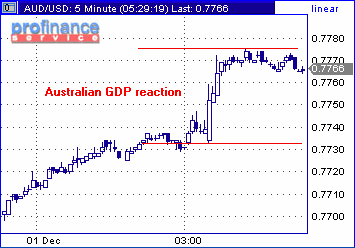 Как сообщило Австралийское бюро статистики, ВВП в 3 квартале текущего года вырос на 0.3 процента по отношению к предыдущей четверти и оказался равным 3.0 процентам в годовом исчислении. По среднему прогнозу XFN-Asia, аналитики ожидали квартальное увеличение на уровне 0.5 процентов. В прошлом квартале рост ВВП составил 0.8 процентов. За исключением сельского хозяйства экономический рост в 3 квартале составил 0.3%, а с учетом фермерских хозяйств - 0.6 процента.