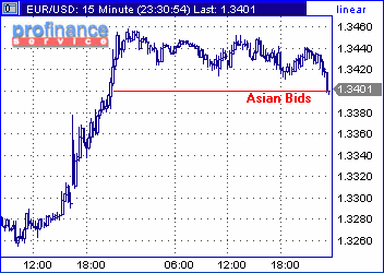 Доллар США ускорил свой рост против евро и йены. Против японской валюты ему удалось реализовать процентное укрепление в течение понедельника. Против евро американский конкурент вырос на 0.7 процентов. Дилеры сообщают, что это движение вызвано лишь техническим фактором, а именно закрытием коротких по доллару позиций для фиксации прибылей после пятничного падения. В паре евро/доллар дилеры отмечают формирование стопов на уровне 1.3385, поскольку в данный момент происходит поглощение бидов от японских имен.