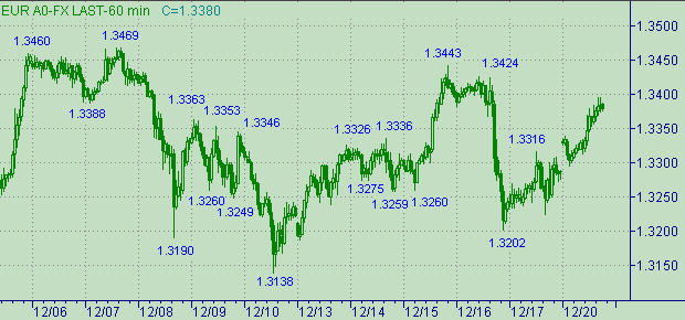 Повторенье мать учения - повторим ещё раз. Область 1.2950-1.3500 рассматриваем как интервал коррекционных изменений курса. Up-тренды обозначатся на графиках и в умах в случае выхода курса выше 1.3507 (уровень 1.3507 соответствует равенству длин восходящей ветки 1.3138(10/12/04)-1.3443(15/12/04) и ветки с началом от 1.3220(16/12/04)), наиболее вероятная целевая техническая область - 1.3680-1.3700.