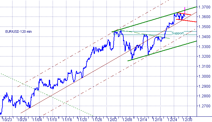 Евро/доллар снова консолидируется. Причем форма последней может кому-то показаться расходящимся треугольником - медвежьей фигурой, кому-то бычьим флагом. Мы придерживаемся последнего варианта. Если флаг сработает, быкам, вероятно, удастся пробить широкий восходящий канал и выйти к следующей цели долгосрочного роста на $ 1.3825. Трудно представить, что после прорыва полотнища они оступятся при прорыве канала, в противном случае их ждет сокрушительное поражение - падение, при котором даже поддержка на $ 1.3450 может оказаться не в состоянии сдержать продажи. Можно попытаться сыграть небольшим лонгом либо от нижней границы полотнища (со стопом на $1.3545), либо после его бычьего прорыва.