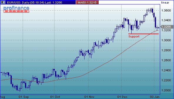 Евро/доллар. Вчерашние данные PMI в секторе услуг не смогли повредить установленной с началом текущего года нисходящей тенденции в паре. Более вероятно сегодня увидеть дрейф в горизонтальном коридоре, но с технической точки зрения сохраняется возможность продолжения "мягкого" укрепления доллара. Ключевая поддержка по-прежнему расположена на уровне 1.3140. Но сегодня курс пары вряд ли опуститься ниже 1.3215. Эта отметка представляет собой значение 50-дневной скользящей средней линии. Максимумы роста единой валюты стоит потенциально расположить на сегодня лишь на 1.3335.