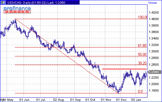 В рамках устойчивого восходящего движения во второй раз в этом году, на торгах во вторник пара доллар/канада протестировала фигуру 1.2400. Стоит обратить внимание на то, что в течение декабря данный уровень был проверен на прочность также два раза, однако и тогда пробить его не удалось. Вчерашнее тестирование стало реакцией даже не на сохранение ставки на уровне 2.5% годовых, а на удивительно мрачную заключительную инструкцию, которая позволила высказать предположения о том, что Банку Канады в течение 2005 года, возможно, даже придется снизить ставки. Представленное после заседания BOC коммюнике было сфокусировано на отрицательных результатах роста и производительности в течение прошлых 2 лет. Однако в плане предстоящих перспектив участники рынка считают более значимым отчет, публикуемый Банком Канады в четверг.