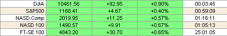 Акции компании Johnson & Johnson выросли на 3.6% до 63.68 после того, как ее прибыль в 4 квартале 2004 года превысила прогнозы аналитиков. Второй по величине в США производитель химикатов DuPont Co. прибавил в стоимости 1.2 процента, поднявшись до 46.58, поскольку компания сообщила о том, что в 2005 году ожидает существенный рост доходов. Среди акций, реализовавших значимый рост в течение регулярной сессии стоит отметить бумаги Merck and Co., который выросли на 3.7% до 30.95. При этом в своем квартальном отчете компания сообщила, что доходы упали на 21 процент, в связи с изъятием из товарной линейки такого медицинского препарата для лечения артрита, как Vioxx. Однако обвинения, ровно, как и вся совокупная ситуация, сложившаяся вокруг данного препарата далеко не нова, и уже учтена рынком. Поскольку дополнительных негативных факторов не оказалось, игроки начали покупать акции Merck. Акции сталеприозводителей также смогли прибавить в стоимости. AK Steel рапортовала о квартальном доходе, который оказался лучше ожиданий аналитиков, что позволило бумагам компании вырасти на 2.4% до 14.24.
