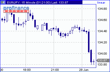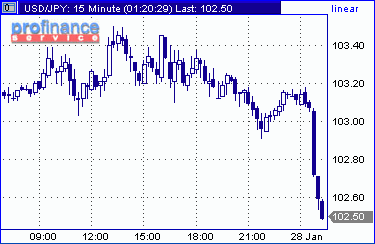 "Настало время для того, чтобы Национальный Банк Китая произвел переоценку юаня. Мы нуждаемся в большей гибкости. Это означает ревальвацию, которая, в частности необходима, для борьбы с инфляцией", - сказал Ю Ёндинг, член комитета по валютной политике центрального банка Китая в своем интервью на международном экономическом форуме в Давосе после обсуждения слабости доллара. Валютный рынок отреагировал на это заявление агрессивными продажами евро против йены и покупками японской валюты против доллара. Ранее отмечалось дилерами, что уровень 134.20 в евро/йене несет в себе ключевое значение. Он оказался пробит, что вызвало поглощение стопов расположенных ниже. Это активировало продажи в доллар/йене. Курс этой пары пробил сопротивление на 102.90. Поглотил стопы под 102.80 и в данный момент, как и отмечалось ранее, приближается к тестированию бидов на 102.45.