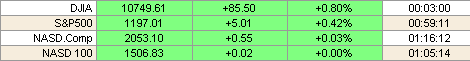 На прошедших в четверг торгах американские акции продемонстрировали позитивную динамику и закрылись в плюсе, получив поддержку от хороших экономических данных и серии квартальных корпоративных отчетов, оказавшихся лучше ожиданий аналитиков Wall Street. Активную поддержку "голубым фишкам" Dow оказывали бумаги American International Group Inc., которые выросли на 3.34% до 71.62, после того, как в опубликованном отчете компания сообщила об 11-процентном росте прибыли. Бумаги страховых компаний также получили поддержку со стороны решения Сената в отношении судебных процессов по групповому риску. Обычно корпорации требуют больших страховых выплат, поэтому изменения в законодательстве, ограничивающие судебные процессы, помогут страховщикам сохранить существенную долю денежных средств. Рост цен на нефть стал основной причиной повышения стоимости энергетических акций. Так бумаги ExxonMobil Corp. выросли на 1.51% до 56.38. Акции корпорации ChevronTexaco прибавили в стоимости 1.24 доллара, поднявшись до 57.40. В продолжении разговора о корпоративных прибылях прошедшего квартала стоит отметить отчет Aetna Inc., который превзошел прогнозы экономистов. При этом компания повысила свои ожидания будущих доходв, объявив о сплитовании своих акций в соотношении 2 к 1. Бумаги Aetna выросли на 4.2% до 133.98. Однако технические акции, не смотря на рост, оставались под давлением со стороны телекоммуникационной шведской компании Ericsson, акции которой упали на 8% до 28.83, поскольку квартальная прибыль всемирно-известного изготовителя сотовых телефонов оказалась ниже ожиданий.