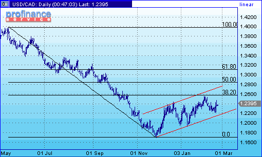 Канадская валюта в ходе прошедших в четверг торгов сумела восстановить значительную часть потерь против американского доллара, закрывшись незначительным понижением котировок. После того, как канадский Министр Финансов Ральф Гудейл опубликовал проект бюджета на 2005/2006 год, в котором предусматривалось установление ограничения в размере 30% на иностранные активы в активах пенсионных фондов, канадская валюта стремительно ослабила свои позиции против доллара США, протестировав минимумы на 1.2496. Азиатская и большая часть европейской сессии проходили в рамках торговли около установленных максимумов. Однако торги в Нью-Йорке оказались благосклонные к loonie, который смог реализовать укрепление до 1.2380. Рыночные наблюдатели прокомментировали ситуацию, сообщив, что в момент публикации проекта бюджета падение канадской валюты носило чрезмерный спекулятивный характер, что и позволило в последствии сформировать нисходящее корректирующее движение в паре. "Мы упали слишком далеко и слишком быстро", -сказал Дейв Бредли, директор торговли иностранной валютой из Scotia Capital. Другим позитивом для канадской валюты стало сообщение от управляющего Банка Кореи, который заявил, что в рамках диверсификации валютных резервов они рассматривают вариант покупки британских фунтов стерлингов и канадских долларов. Аналитики предупреждают, что наступившая пятница - стандартный день платежей по поставкам нефти, что может генерировать продажи американского доллара против loonie, поскольку конвертация доходов от нефтяных и газовых экспортеров всегда поддерживает канадскую валюту. Также в пятницу в 16:30 мск ожидается публикация платежного баланса Канады профицит которого, согласно прогнозам, должен составить 7.4 млрд. канадских долларов.