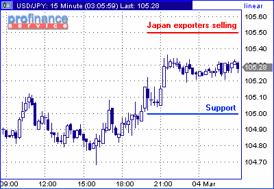 Курс пары доллар/йена, вероятно, останется выше фигуры 105.00, поскольку позиции доллара по-прежнему подкрепляются позитивным настроем игроков в отношении данных по платежным ведомостям. Спекулянты пока не спешат активизировать покупки, поскольку дилеры отмечают офера экспортеров на 105.50. Минору Шиоири, старший валютный трейдер из Mitsubishi Securities предполагает, что цифры NFP в районе 300000 способны вызвать тестирование сопротивления на 106.00. Пробитие этого уровня за счет содействия технических факторов в виде поглощения вышерасположенных стопов, может победить стойких японских экспортеров, ускорив падение йены до 107.00.