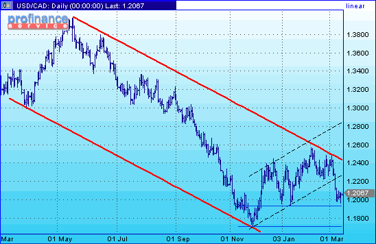 Очередной волатильный сеанс торговли в паре доллар/канада оказался завершен по итогам торгового дня незначительным изменением котировок. Однако в отличии от понедельника, прошедший сеанс торговли полностью был под управлением поступающей макроэкономической информации. Так стремительное укрепление канадской валюты и тестирование отметки 1.1980 стало причиной сильных канадских данных по производственным товарам. Показатель в январе стал максимальным за год, увеличившись на 3% до 51.52 млрд. канадских долларов. Новые заказы изготовителей выросли максимальными, начиная с сентября 2003 года темпами. Невыполненные заказы выросли до уровня почти восьмилетних высот, а материально-производственные запасы увеличились 13 месяц подряд. Тем не менее, канадский доллар, протестировав самые сильные суточные уровни текущего года, не смог удержать за собой приобретенные достижения. Данные по притоку иностранного капитала в США за январь, составившие согласно представленной вниманию участников рынка статистике 91.5 млрд. американских долларов, оказали значительную поддержку валюте США, которая стремительно восстановила потери против loonie. Сегодня на внутренней стороне канадский доллар не имеет никаких экономических новостей, поэтому его судьба остается в руках внешних факторов. В четверг игроки в данной паре уделят большое внимание выступлению представителя управляющего Банка Канады Дэвида Лонгворта по теме: "Валютная политика и экономические перспективы".