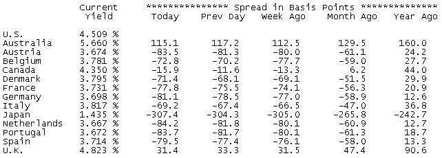 Доходность 10-летних облигаций США в соотношении с другими странами