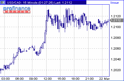 Канадский доллар завершил торговый день в понедельник недалеко от достигнутых на 1.2136 максимумов в рамках проходящего перепозиционирования участников рынка перед сегодняшним решением по ставкам США. Восходящее движение в паре доллар/канада началось с открытием торгов в Европе. Азиатские максимумы на 1.2067 оказались преодолены, и курс пары начал стремительно двигать в восходящем направлении, с ходу пробив фигуру 1.2100. Лишь с началом нью-йоркских торгов канадской валюте удалось стабилизировать свое положение. Курс пары предпринял несколько попыток возвращения ниже 1.2100, но все они оказались безуспешными. Стив Батлер, стратег из Scotia Capital в Торонто предупреждает, что в столь стремительное ослабление канадского доллара заложены очень позитивные ожидания в отношении заключительной инструкции FOMC. Он полагает, что в том случае, если общение повышать ставки в дальнейшем в измеренном темпе не будет удалено из коммюнике, и ставки будут повышены на 25 базисных пунктов, то loonie получит возможность восстановить значительную часть утраченных позиций. "Если курс пары окажется ниже 1.2085, восходящее движение понедельника можно считать ложным", - говорит Батлер.