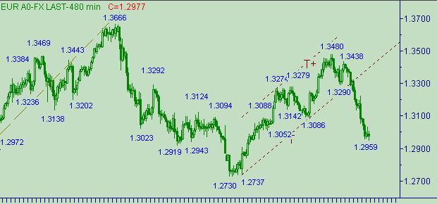 Попробуем работать по такому плану. От области 1.2970-1.2980 открывать позицию на продажу, стоп-лосс - 1.3011, цель - 1.2890.