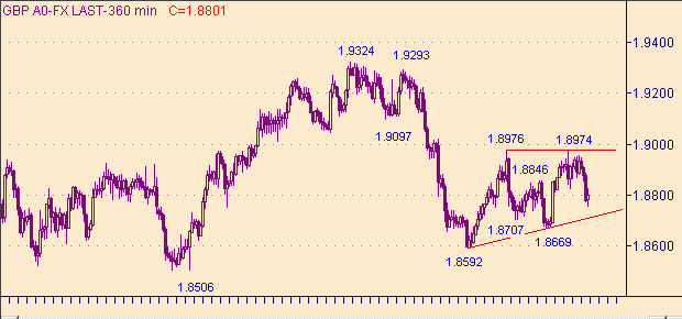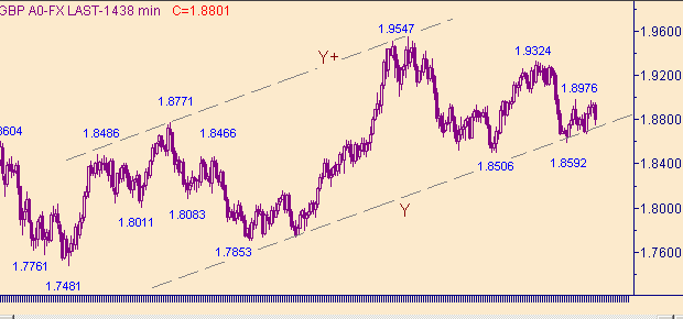 Фунт/доллар не смогли выйти выше 1.8975, но и нисходящих подвигов они не совершили. Тем самым оставив себе варианты как для down так и для up. Для качественного перехода в up-движение нам необходимо закрытие дня выше 1.9000. Целевые уровня для восходящего движения: 1.9050, 1.9090, 1.9220, 1.9400. Но техническая картина на графиках такова, что ничто особенно не мешает фунт/доллар начать формировать восходящий тренд. Восходящее движение с началом от 1.8592(28/03/05) отменит только выход курса ниже 1.8590.