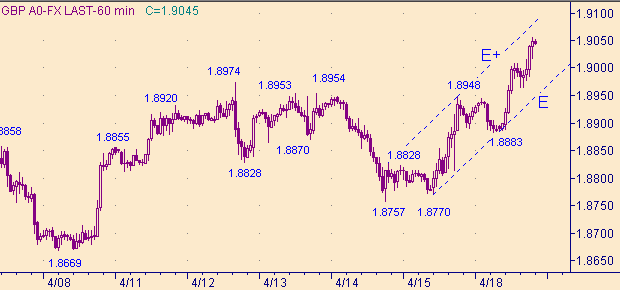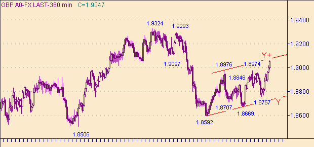 Достижение парой фунт/доллар области 1.9050 совпадает с достижением парой евро/доллар уровня 1.3050.