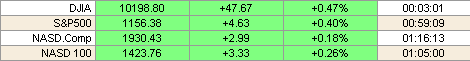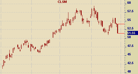 Американские акции на торгах в среду продемонстрировали восходящую динамику котировок, а все основные фондовые индексы США закрылись в плюсе, поскольку снижение цен на нефть благоприятно отразилось на настроениях инвесторов. На торгах на NYMEX июньские контракты на light sweet понизились в стоимости до 51.61 доллара за баррель, что было вызвано ростом нефтяных запасов в США. Это позитивно отразилось на росте бумаг розничных продавцов, поскольку после публикации данных по заказам на товары длительного пользования инвесторы стали перекладываться в их акции и бумаги сектора здравоохранения, уходя из циклических акций, например сталепроизводители и нефтяные компании. Акции крупнейшей американской нефтяной корпорации Exxon Mobil упали на 89 центов до 58.38.