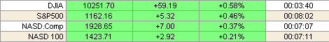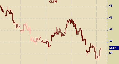 Американские акции продемонстрировали позитивную динамику котировок в течение первого торгового дня этой недели, однако их достижения оказались довольно скромными, поскольку цены на нефть не смогли удержать ниже психологического уровня 50 долларов за баррель. На торгах на NYMEX контракты на light sweet с поставкой в июне выросли в стоимости до 51.02 доллара за баррель, что оказало негативное давление на настроения участников фондового рынка. При этом Wall Street был весьма острожен в преддверии заседания по ставкам FOMC, которое состоится завтра. Стоит отметить снижение стоимости акций крупнейших брокеров. Причиной стало сообщение от UBS, в котором были в сторону уменьшения изменены перспективы сектора, а также изменены инвестиционные рейтинги с уровня "покупать" до уровня "нейтральный" таких компаний, как Goldman Sachs Group Inc., Lehman Brothers Holdings Inc. и Merrill Lynch & Co. Inc. Бумаги Goldman Sach упали на 2.50% до 104.12. Акции Lehman Brothers снизились на 3.62% до 88.40. Акции Merrill Lynch подешевели на 1.56% до 53.09. Причиной для такого решения UBS стали смешанные экономические сигналы в отношении инфляции и общего роста экономики. Акции телефонной компании MCI Inc. упали на 3.35% до 25.64, после того как она согласилась увеличить свое предложение по покупке Verizon Communications Inc. до 8.5 млрд. долларов. При этом их конкурент Qwest Communications International Inc. официально отказался от дальнейшей борьбы за покупку Verizon. Акции Qwest выросли на 2.34% до 3.50. Бумаги Verizon упали на 2.74% до 34.82.