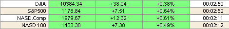 Американские акции на торгах в понедельник незначительно продвинулись в восходящем направлении, продемонстрировав позитивную динамику и закрывшись в зеленой зоне. Оптимизм участников рынка - заслуга отчета корпорации McDonald`s, которая сообщила о росте продаж в апреле на 2.8 процента. Бумаги McDonald`s выросли на 2.25% до 30.04. Однако возобновление роста цен на нефть оказало давление на инвесторов. На NYMEX июньские фьючерсы на light sweet выросли на 1.09 доллара до 52.05. Поступившая в ходе торгов новость о слиянии компаний Duke Energy Corp., которая приняла утвердительное решение о покупке Cinergy Corp. за 9 млрд. долларов. Акции Duke Energy упали на 2.04% до 28.76. Акции Cinergy выросли на 4.46% до 42.18. Также согласно сообщению Wall Street Journal, компания E-Trade Financial Corp. выразила интерес к покупке своего конкурента корпорации Ameritrade Holding. Компания General Electric Co. оказала поддержку индексу широкого рынка S&P 500, после сообщения о планах увеличить инвестиции и нарастить продажи. Бумаги General Electric выросли на 1.06% до 36.23.
