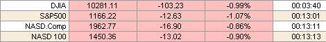Американские акции во вторник продемонстрировали отрицательную динамику, а все основные фондовые индексы закрылись с более чем однопроцентным падением. Одной из ключевых причин такого развития событий стали слухи о том, что многие крупные хедж-фонды, имевшие существенные пакеты акций автомобильных компаний в свои портфелях, понесут большие потери. Напомним, что на прошлой неделе агентство Standard and Poor снизило рейтинг акций General Motors Corp. и Ford. На фоне этих слухов существенно снизились прошедшие в США листинг акции крупнейшего немецкого банка Deutsche Bank, поскольку в потенциале банк был также причастен к деятельности хедж-фондов, финансируя их денежными средствами. Акции Deutsche Bank упали на 3% до 61.85. Сильнейшее давление на индекс Dow оказало снижение бумаги крупнейшей американской страховой компании American International Group Inc., которые потеряли в стоимости 2.57%, снизившись до 53.18. Также негатива в настроения инвесторов добавила компания 3M Co., которая в своем отчете повторила ранее названные перспективы прибылей на 2005 год, указав на то, что видит замедление роста экономики развитых стран. Бумаги 3M упали на 1.44% до 76.61. Авиакомпания Delta Air Lines Inc. в своем официальном сообщении во вторник сказала, что в оставшейся части текущего года ожидает потери. Это стало причиной падения акций компании на 11.52% до 2.92. На NYMEX июньские фьючерсные контракты light sweet по итогам торгов закрылись на уровне 51.70 долларов за баррель, однако в течение сессии стоимость контрактов тестировала максимумы на 53.10, что также сгустило краски на Wall Street.